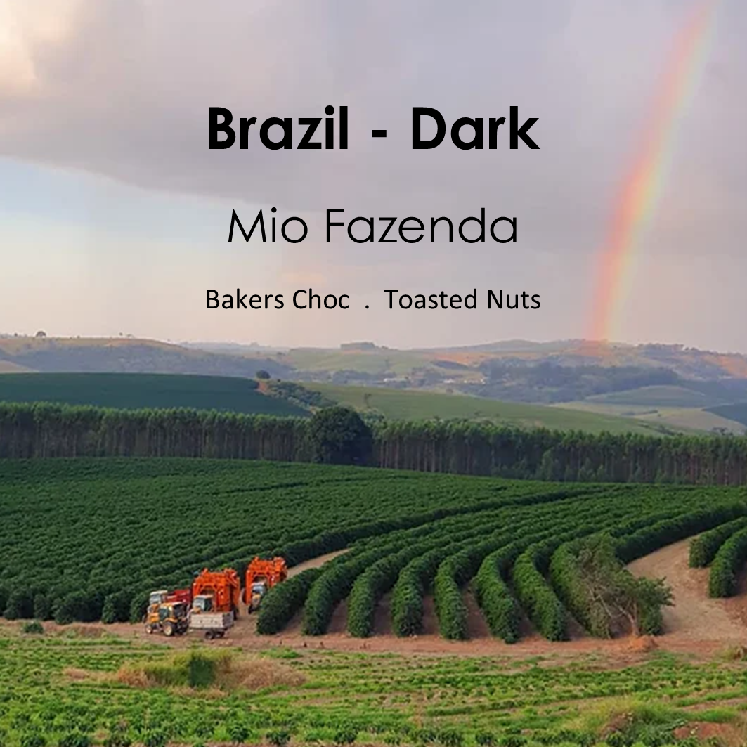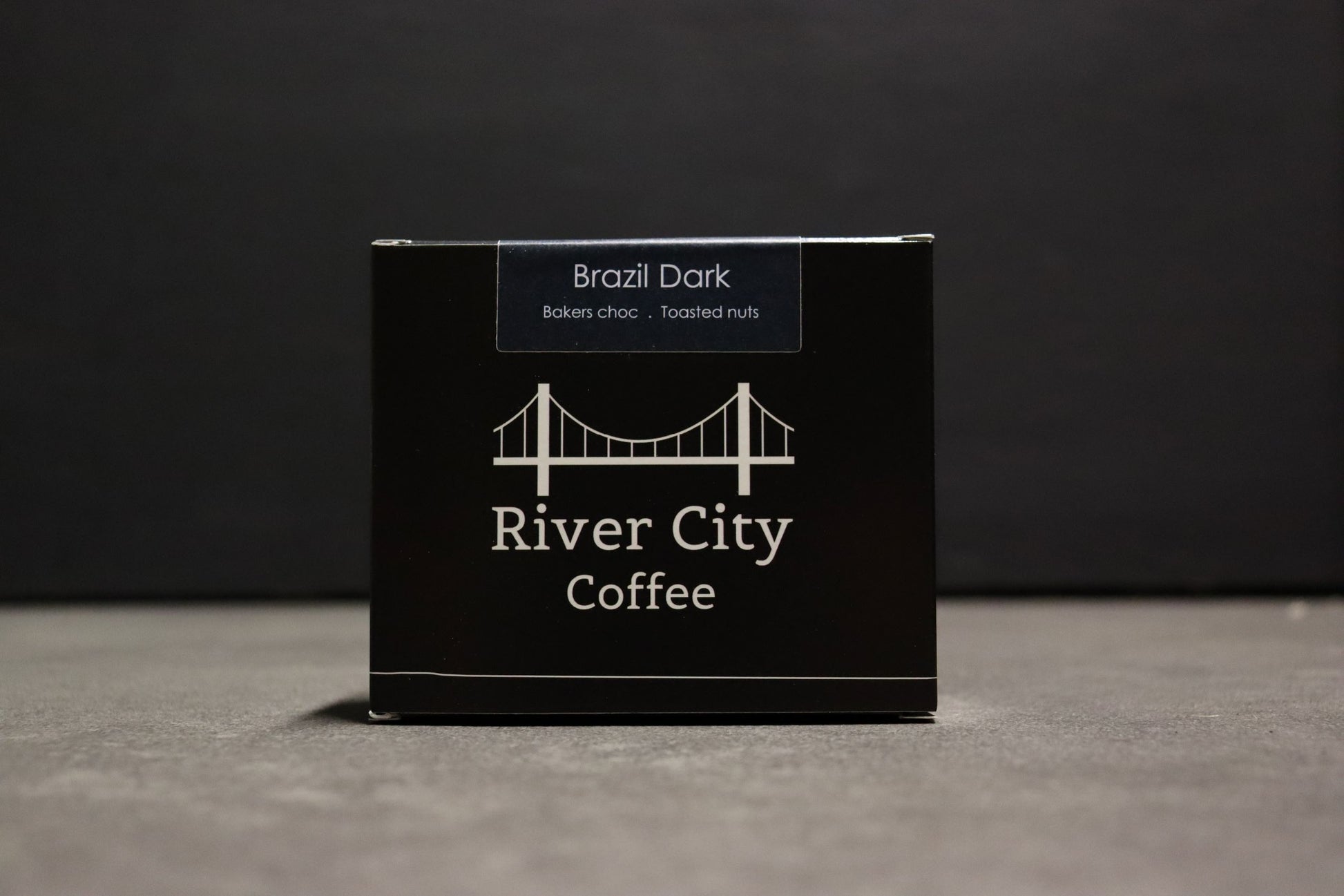 At the roastery we wanted to show how different roast profiles can result in different cup dynamics. Our other roast of this Brazilian bean plays on its inherent sweetness with a medium roast style. As a counterpoint this profile lengthens the development time, and overall roast time, to bring it to a higher drop temperature and darker finish. This further caramelizes those inherent sugars resulting in tasting notes more reminiscent of 85%+ cocoa solids chocolate. The acids have all but dissipated leaving traces of toasted nuts on the finish to this full bodied, brooding cup.